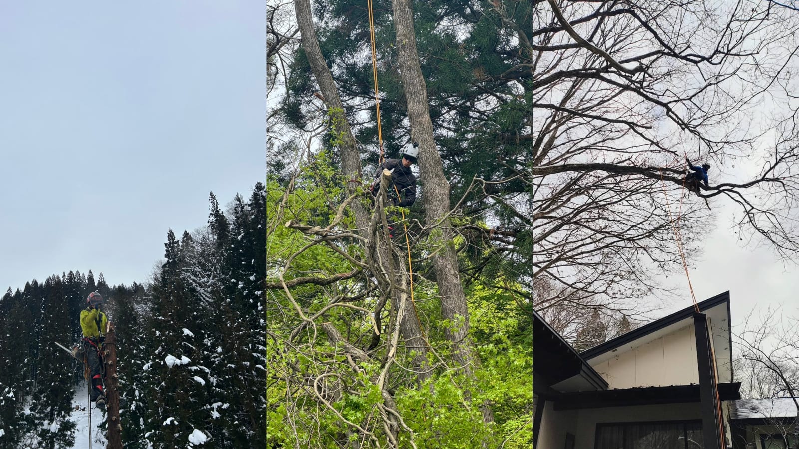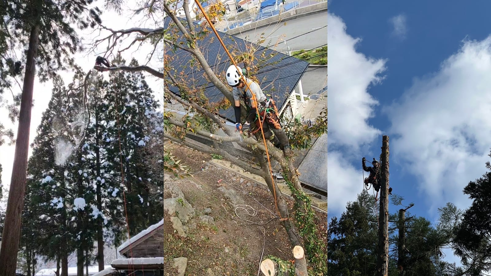 私たちは、ロープワークを駆使した特殊伐採を得意とし、